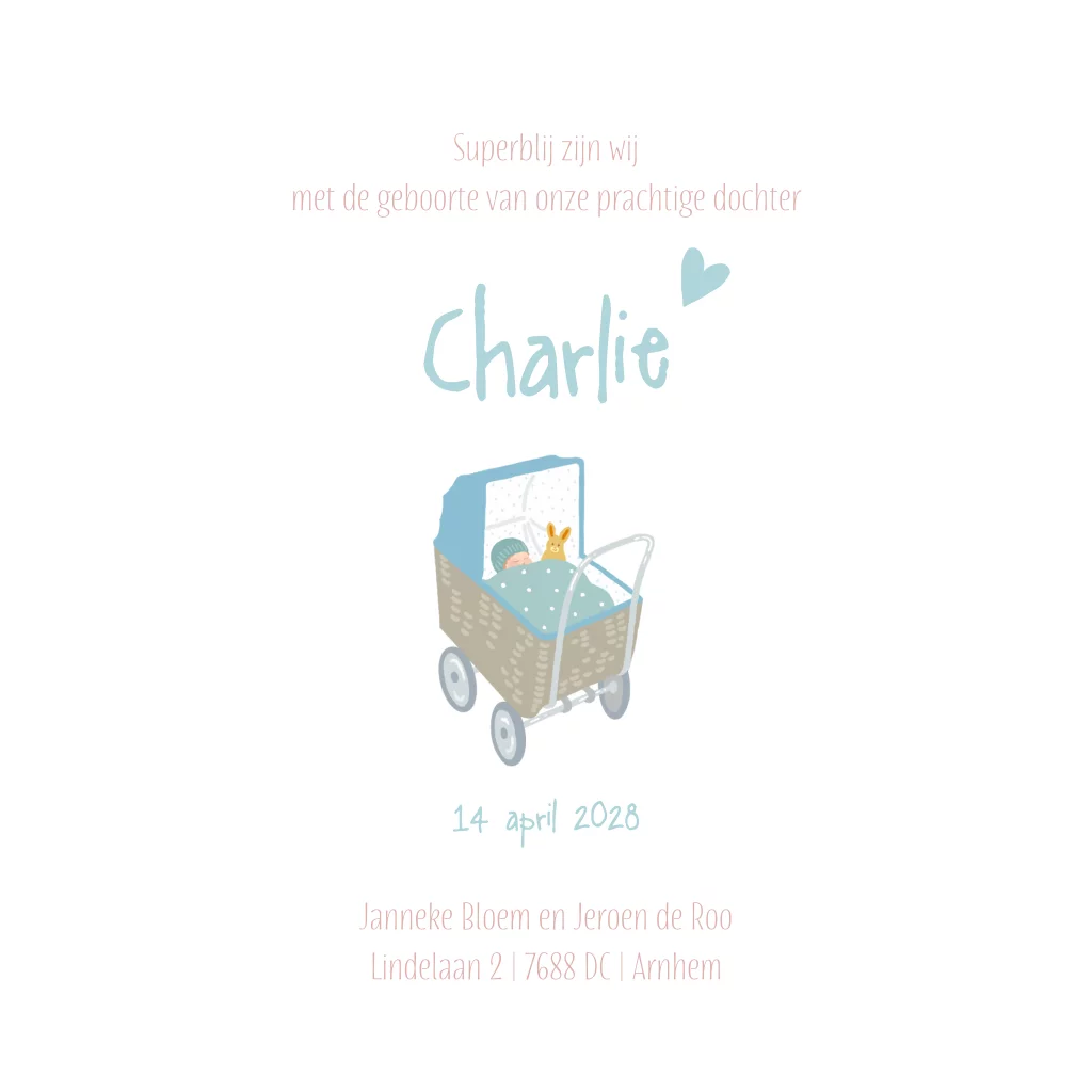 Unisex geboortekaartje met lieve getekende knuffeltjes