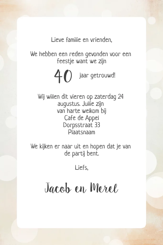 40 jaar getrouwd uitnodiging wegwijzers pastel