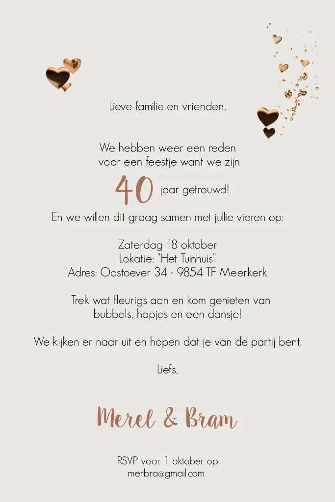 CHAMPAGNE met gouden HARTJES jubileum uitnodiging 40
