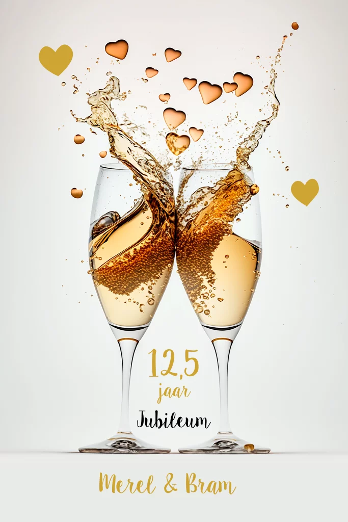 Champagne uitnodiging jubileum 12,5 jaar getrouwd