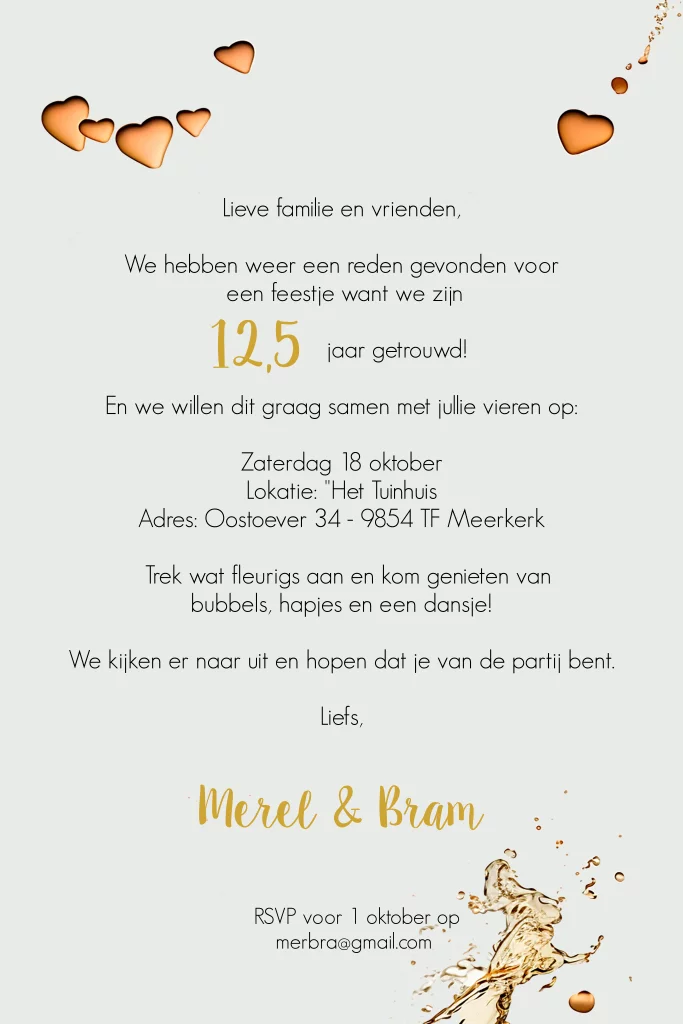 12,5 jaar getrouwd jubileumuitnodiging voor jubileum feest.