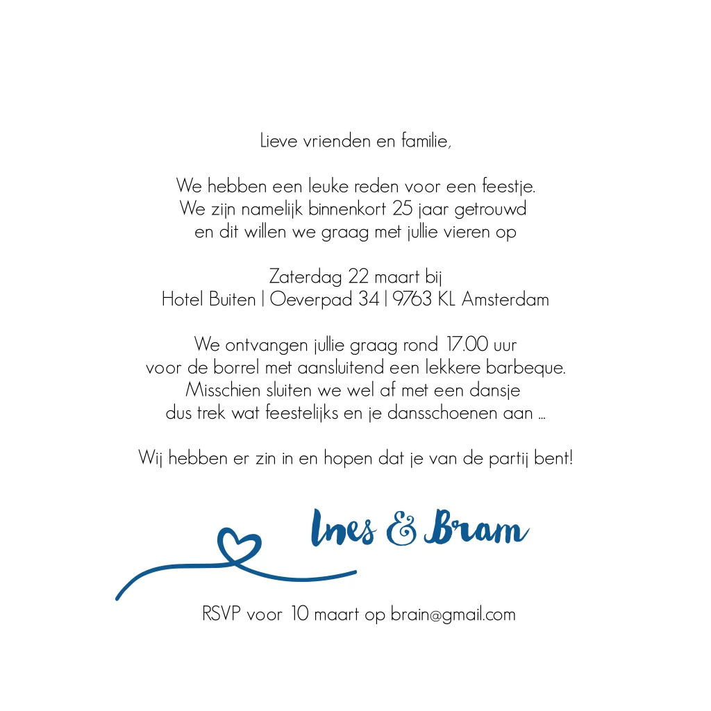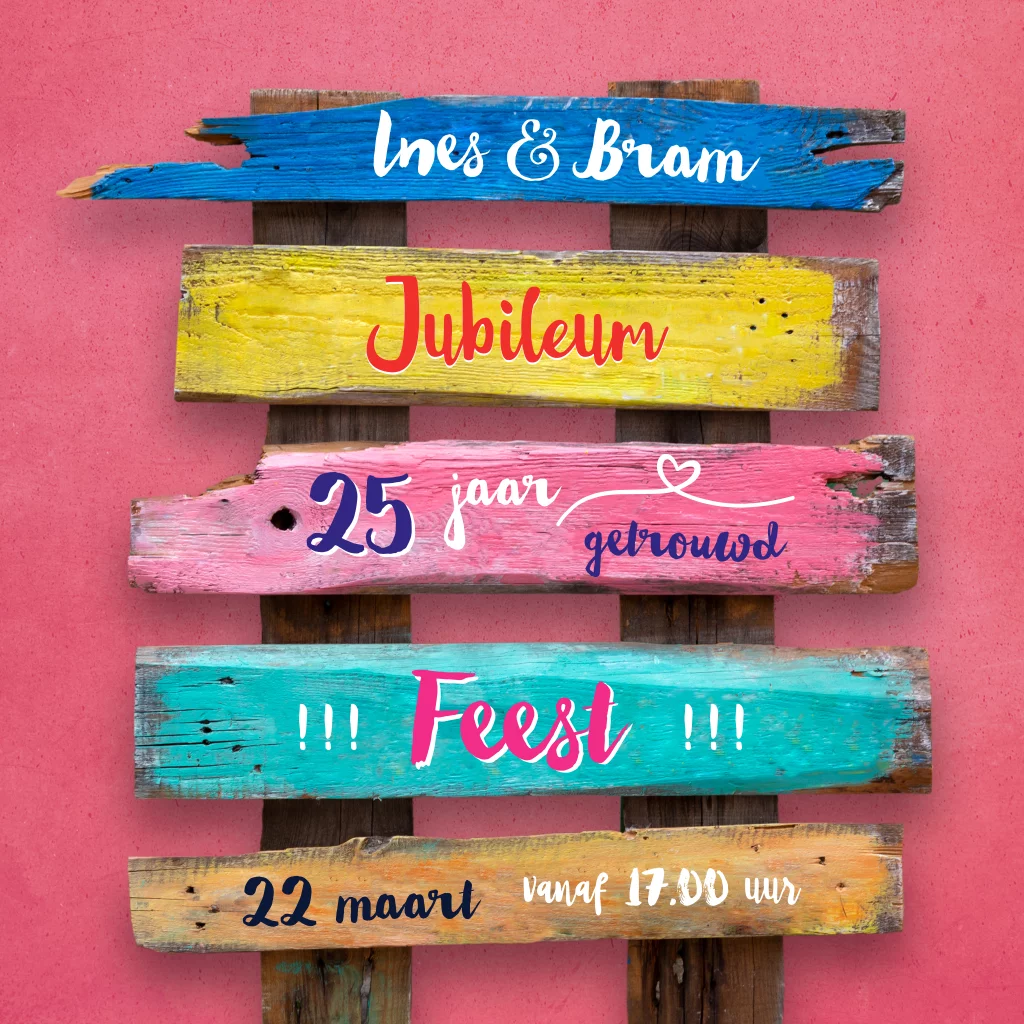 Fleurige uitnodiging bordjes jubileum 25 jaar getrouwd