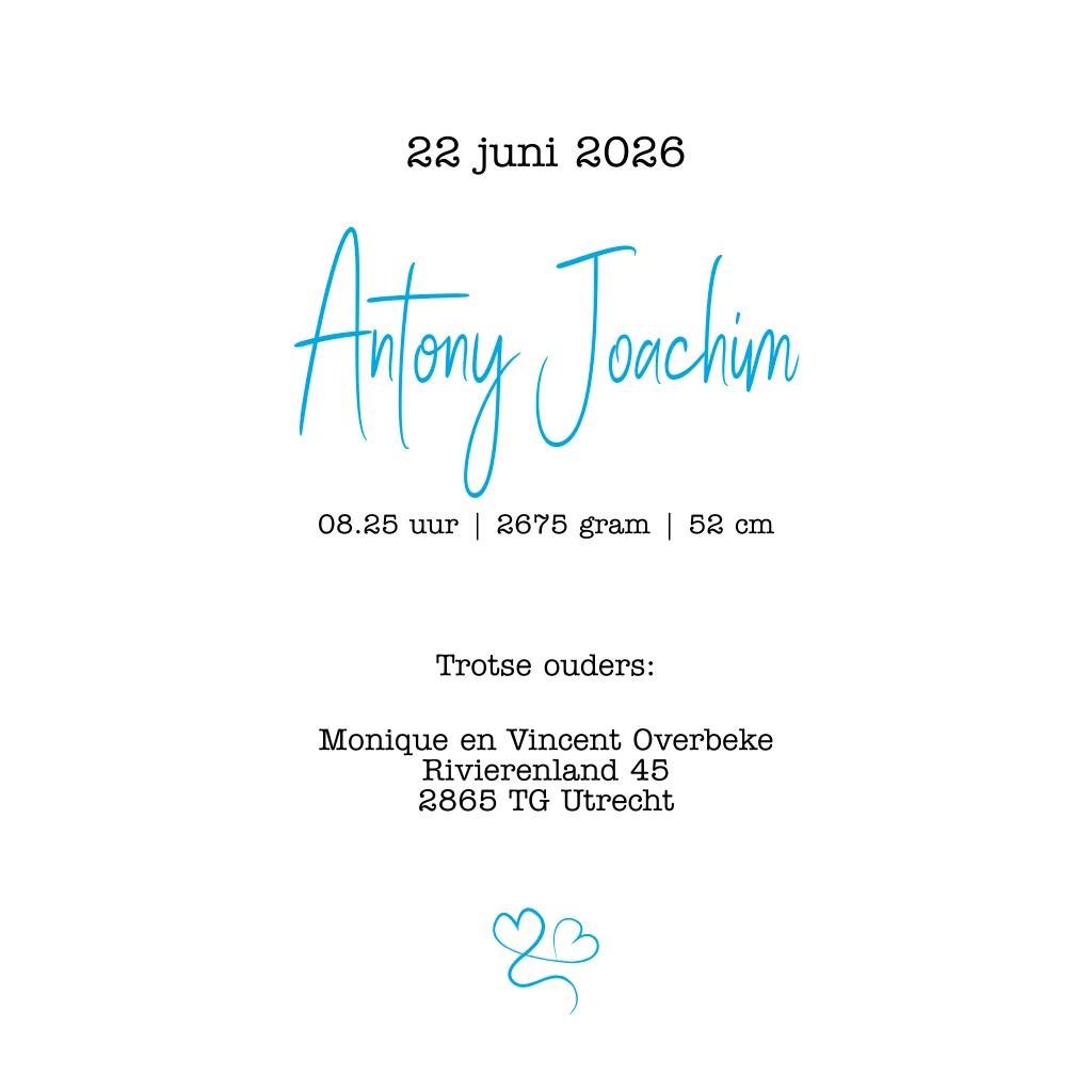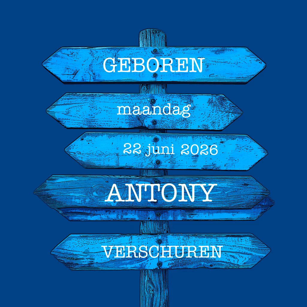 Geboortekaartje houten wegwijzer blauw