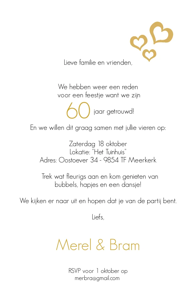 GOUDEN HART 60 jarig huwelijk uitnodiging