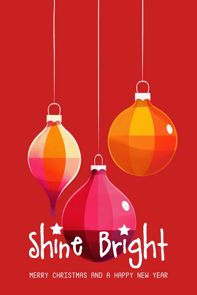 Maak een mooie kerstwens met deze mooie rustige illustratie van kerstballen op een rode achtergrond. De teksten pas je eenvoudig naar wens aan. (24732)