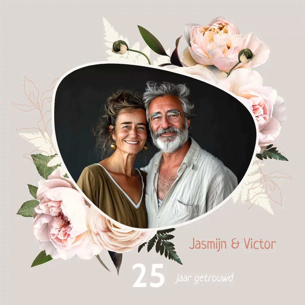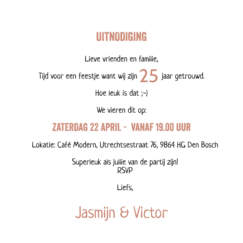 Stijlvolle uitnodiging 25 jarig huwelijksjubileum. De foto en het jaartal zijn makkelijk te wijzigen. (23702)