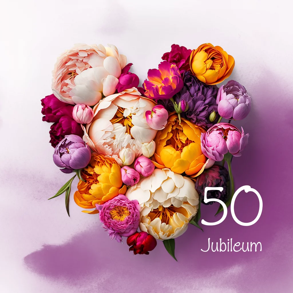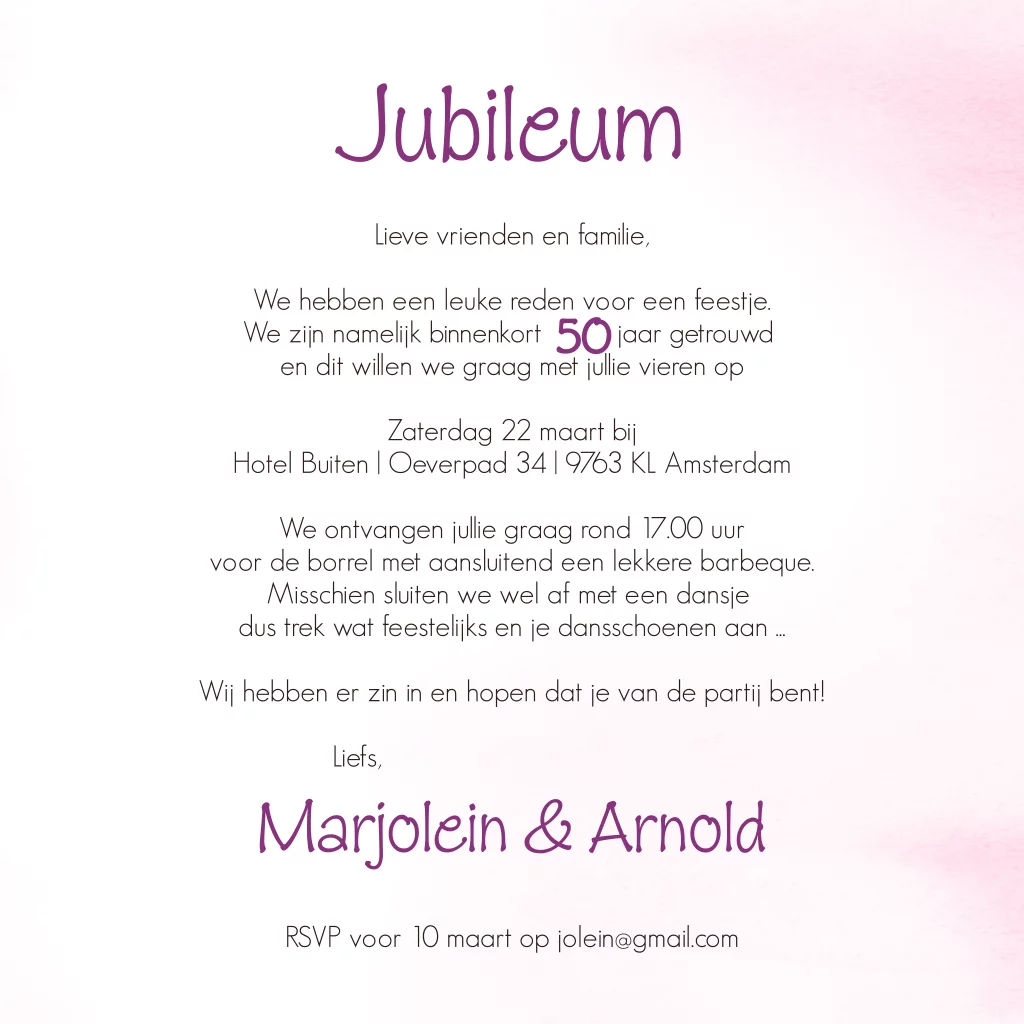 Jubileum uitnodiging 50 jaar getrouwd bloemenhart