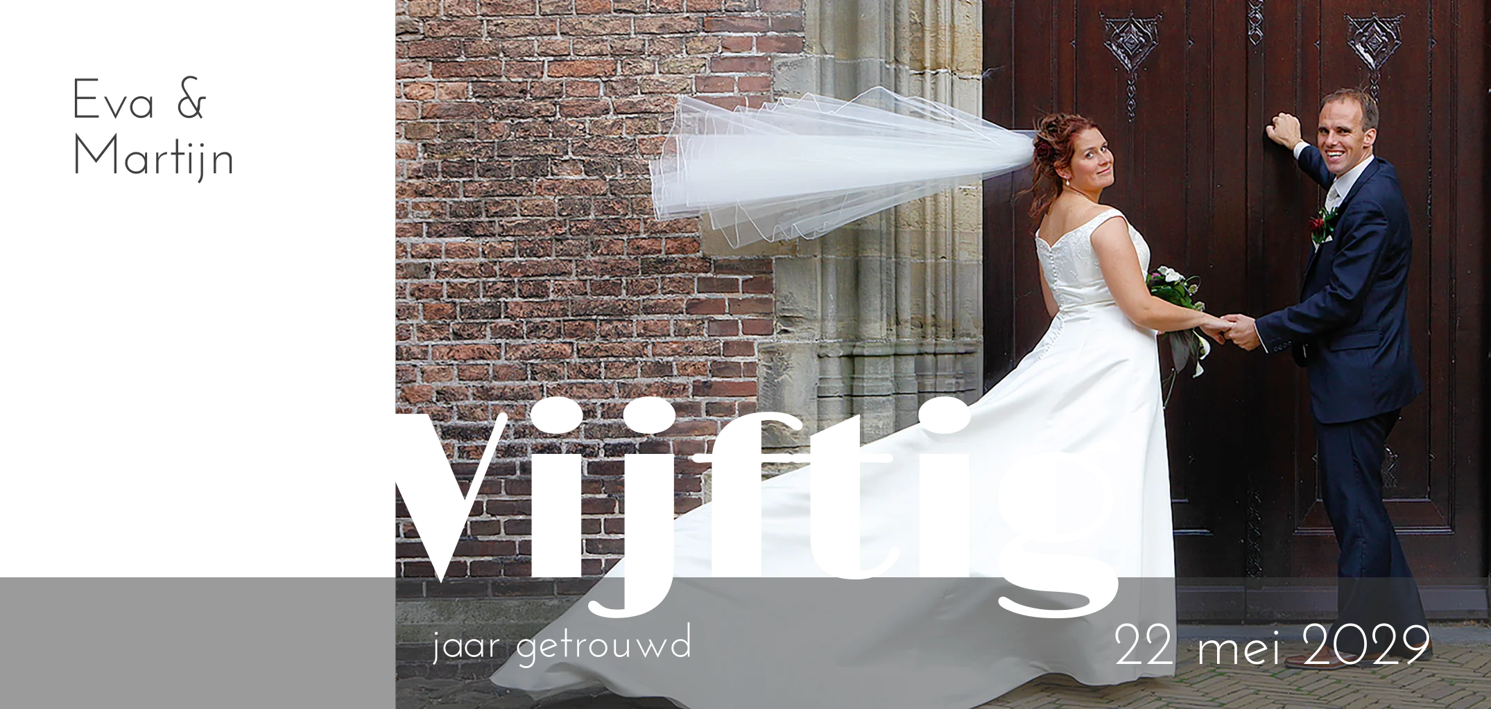 Leuke opvallende uitnodiging voor 50 jarig trouwfeest. Zet je leukste trouwfoto van toen op de voorkant. (22362)