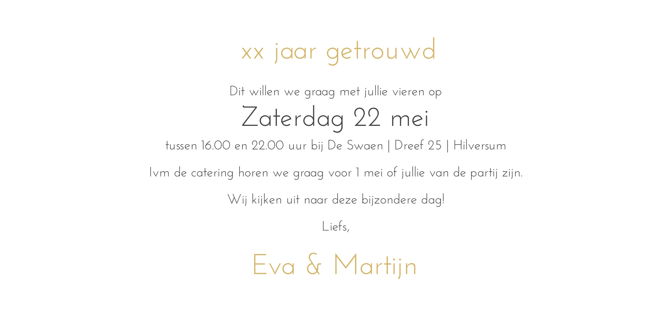 Jubileum uitnodiging 50 jaar getrouwd eigen foto en goudfolie tekst