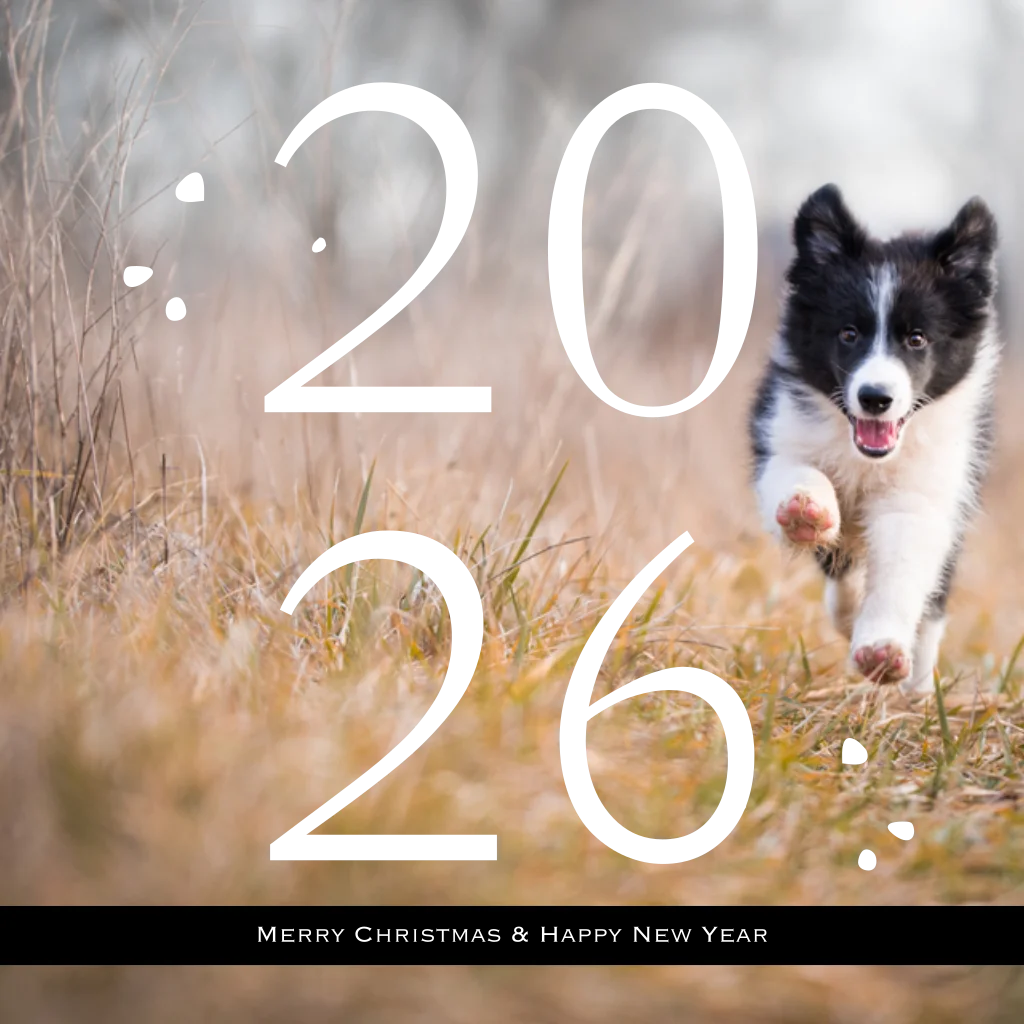 Kerst Nieuwjaarskaart met foto van je huisdier en jaartal in folie