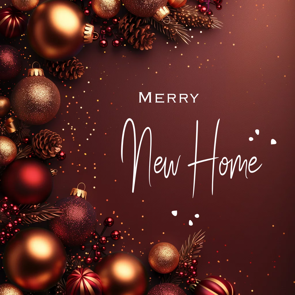 Kerst Verhuiskaart in rood goud tinten