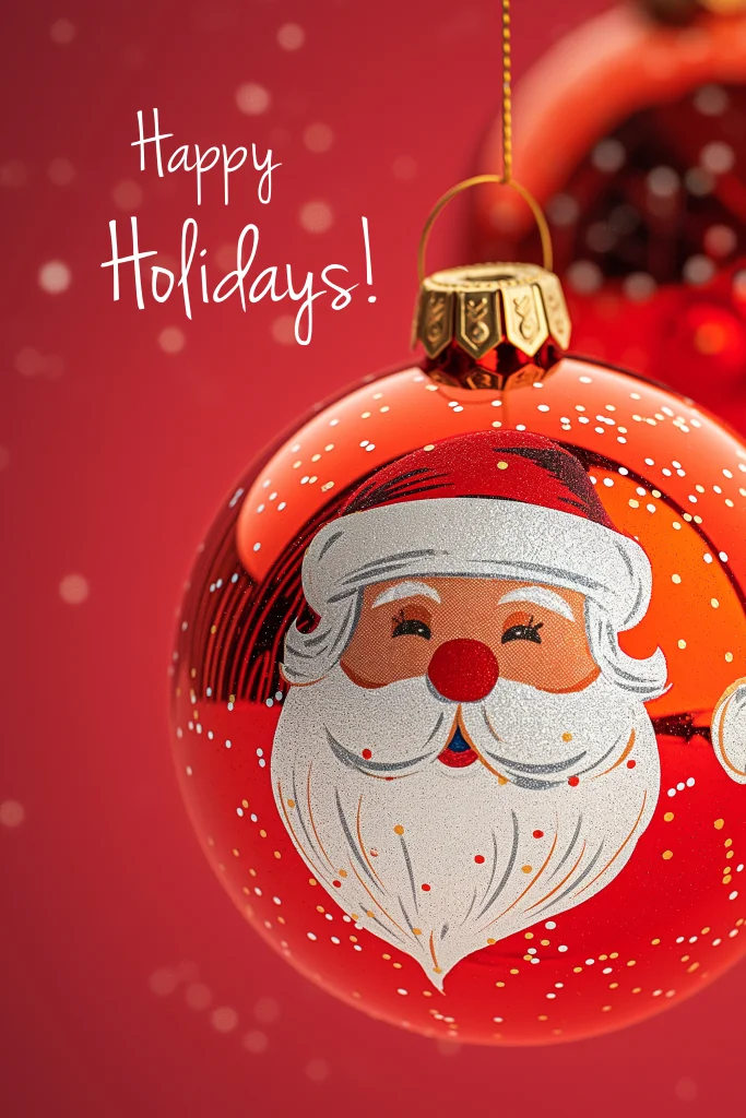 Prachtige kerstman kerstbal. Lekker rode kerstkaart, met binnenin je eigen foto.