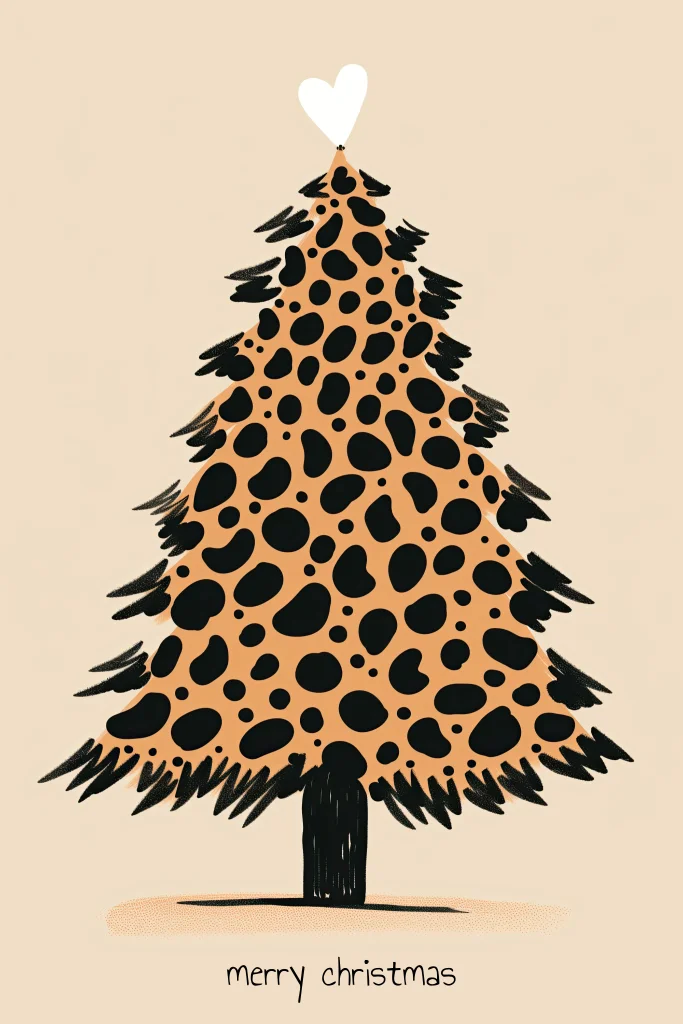 Trendy kerstkaart met luipaard kerstboom met wit hart als piek. Aan de binnenzijde is er ruimte voor een eigen foto. (24138)