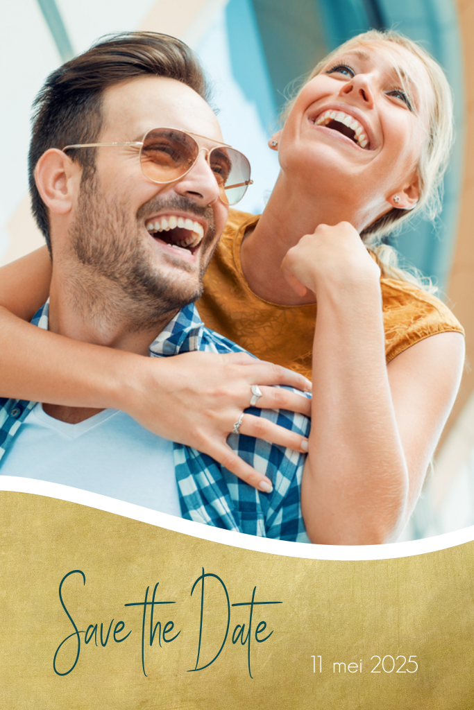 Save the Date met goudkleurige slinger en aanpasbare achtergrondkleur