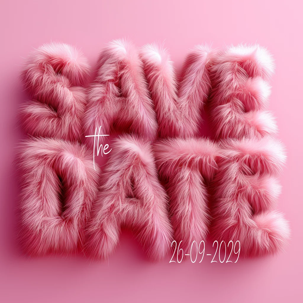 Een hele knuffelige Save The Date kaart. Met letters die eruitzien als roze knuffels. Lekker geinig. (23645)