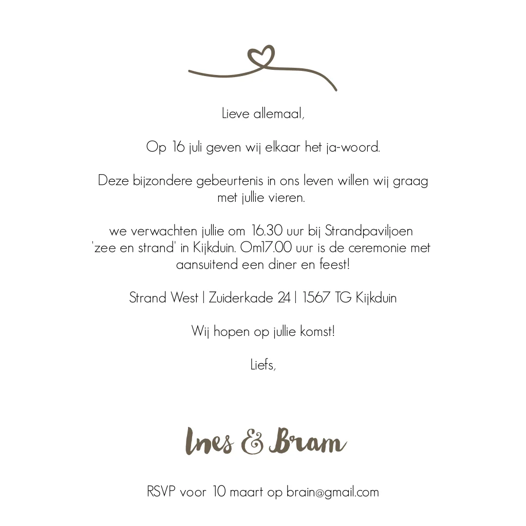 Trouwkaart zee en strand thema wegwijsborden