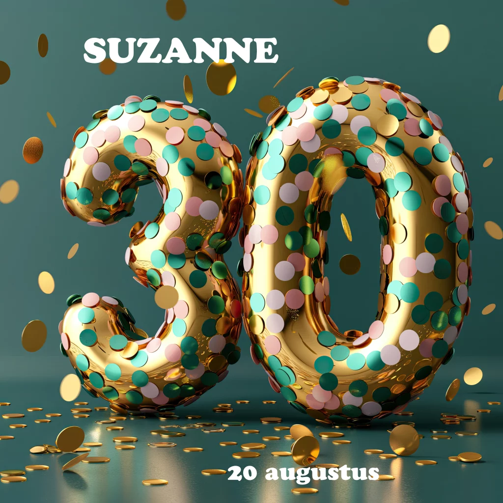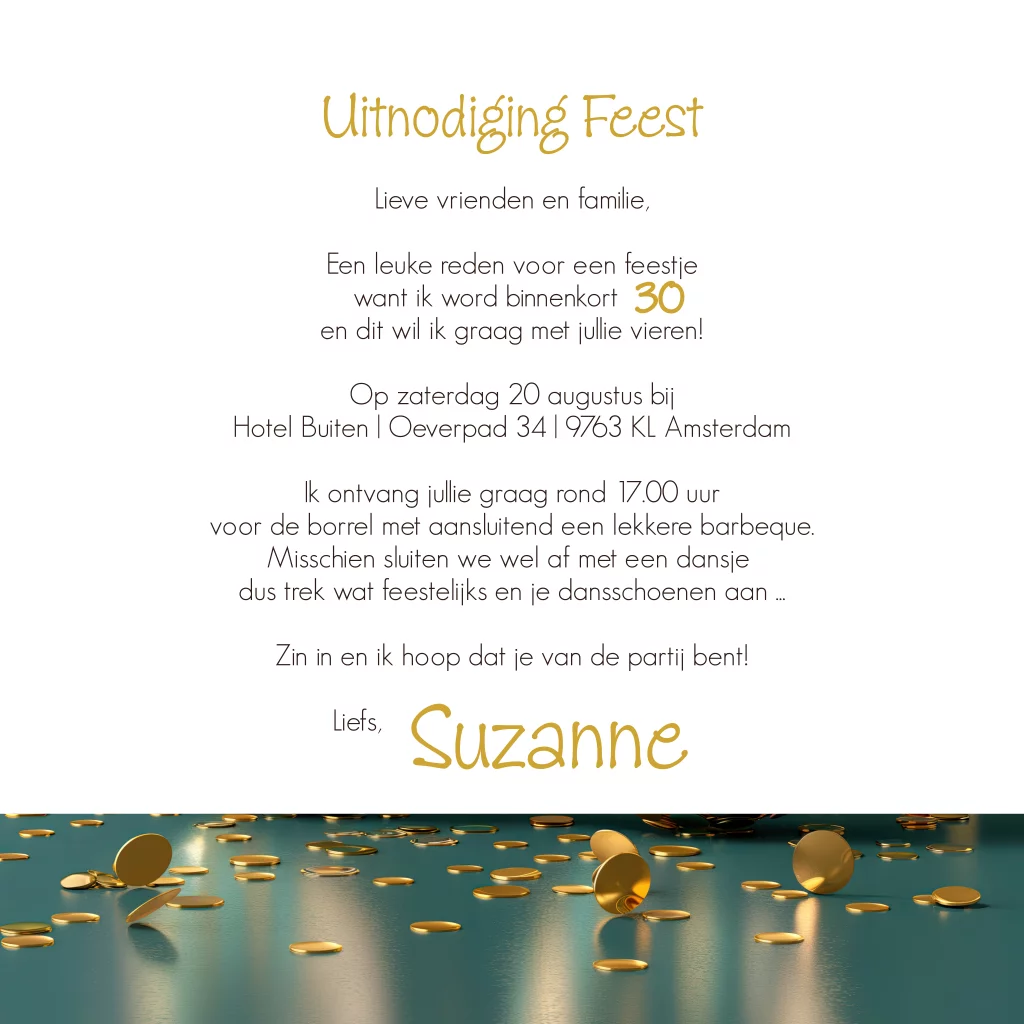 Uitnodiging 30 jaar gouden ballon met confetti