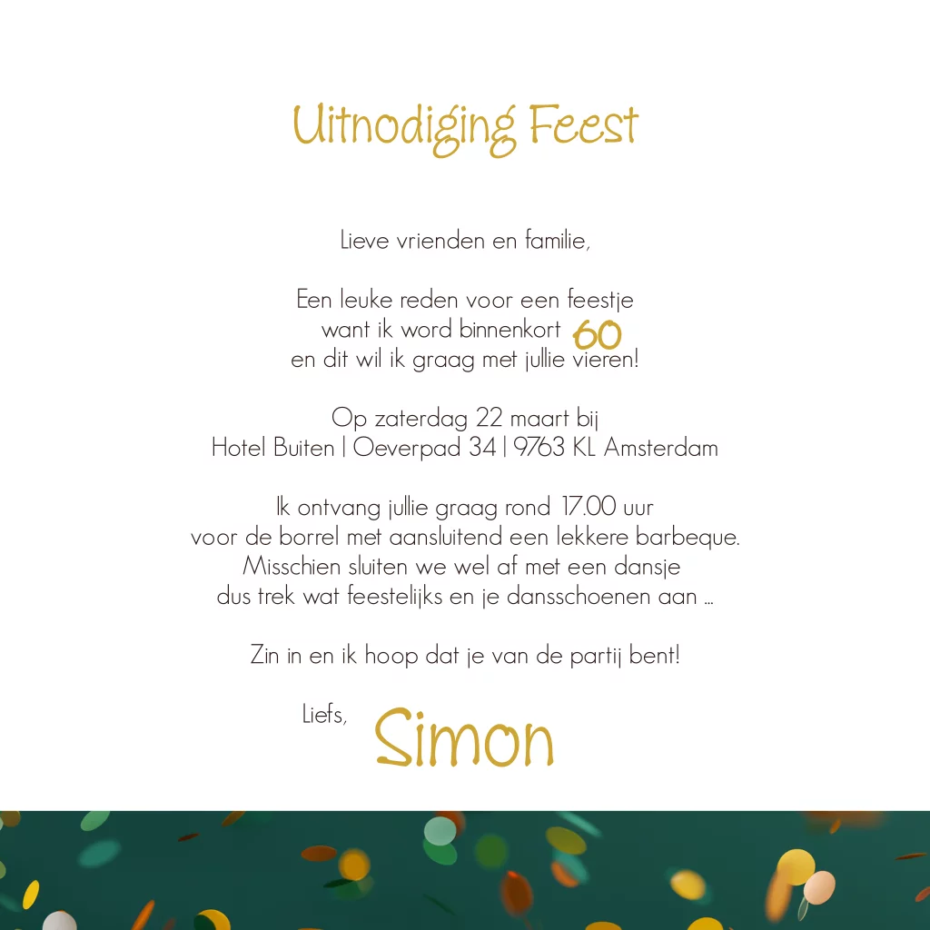 Uitnodiging feest 60 jaar ballonnen en confetti