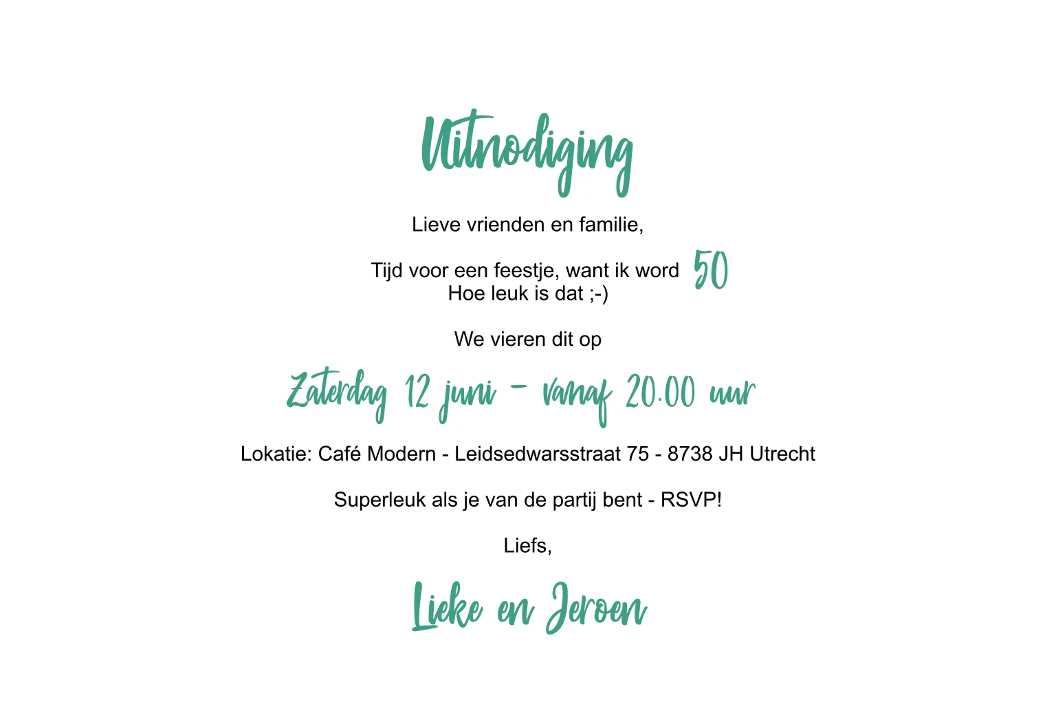 Toffe uitnodiging voor je FEEST. Met gouden ballonnen en slingers. Op een hippe groene achtergrond. Plaats binnenin je eigen foto. Leeftijd is aanpasbaar. (23646)