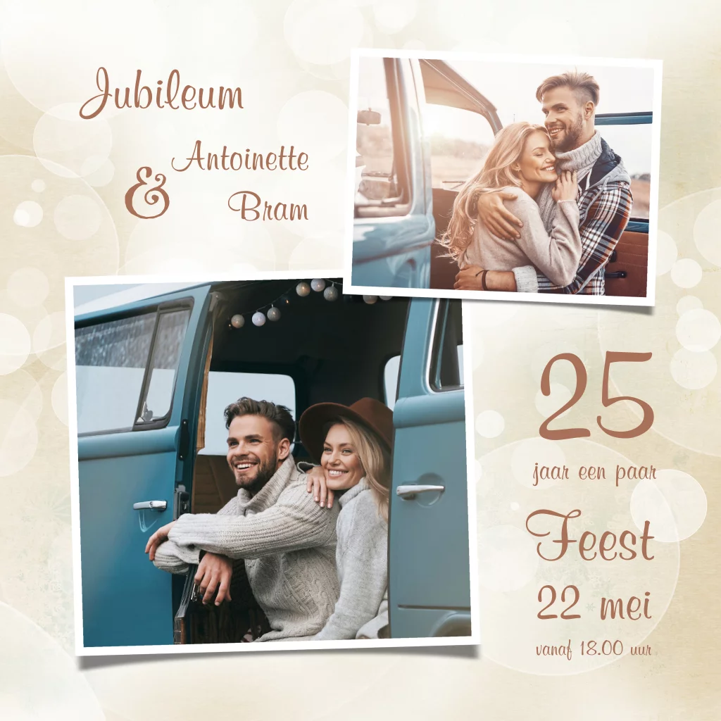 Uitnodiging fotocollage jubileum bubbels 25 jaar getrouwd