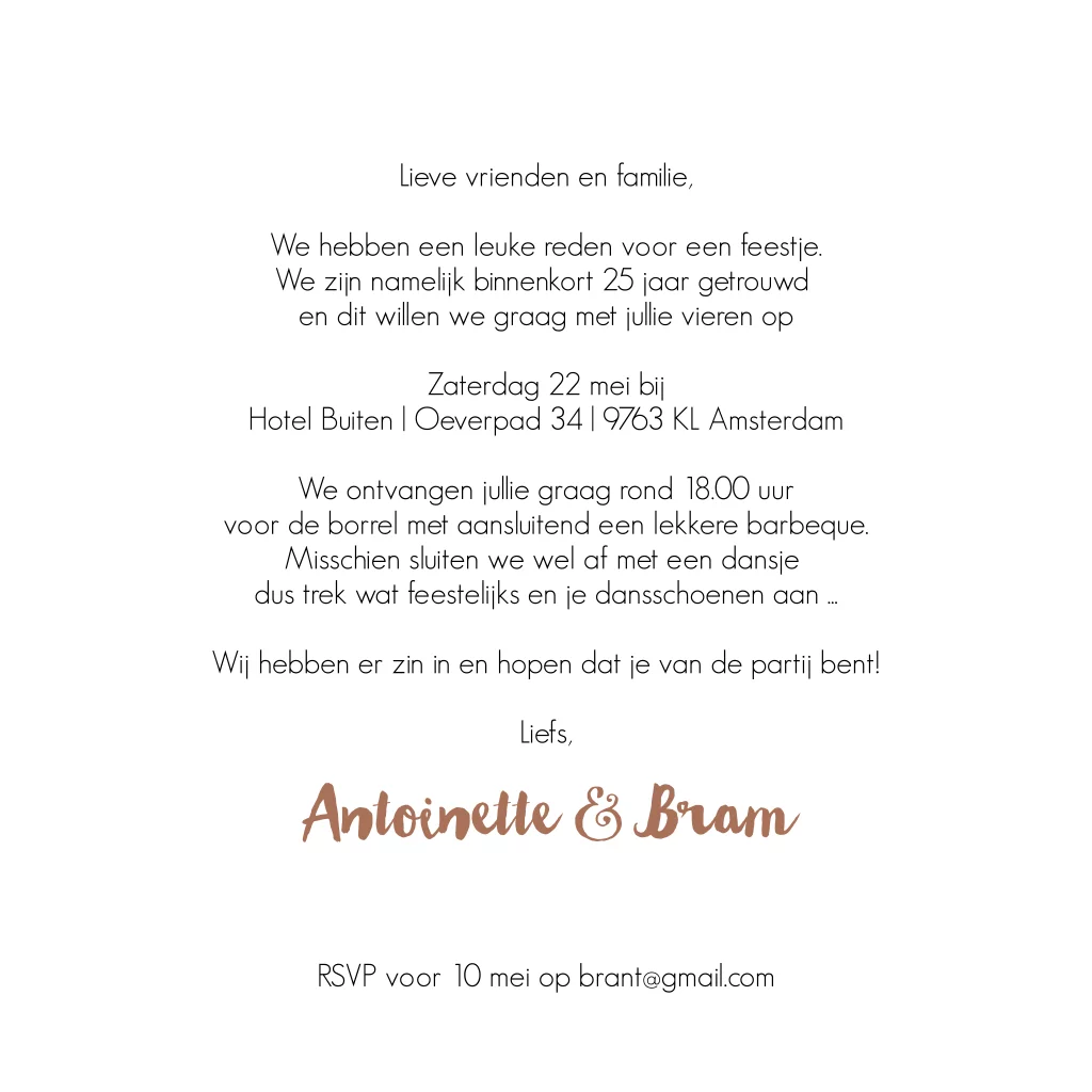 25 jaar getrouwd uitnodiging in fotocollage vorm kun je zo hip maken als je zelf wilt. Plaats 3 leuke foto's en pas de tekst aan. (23501)