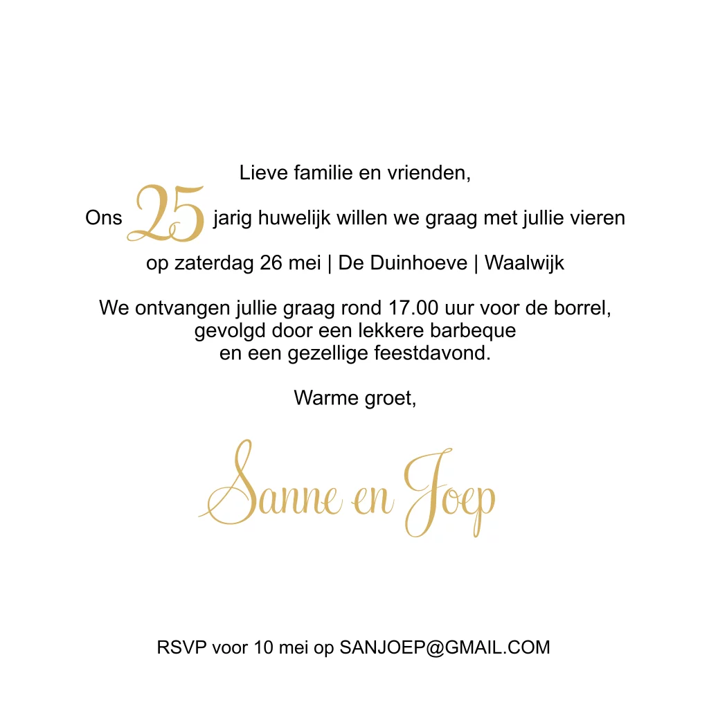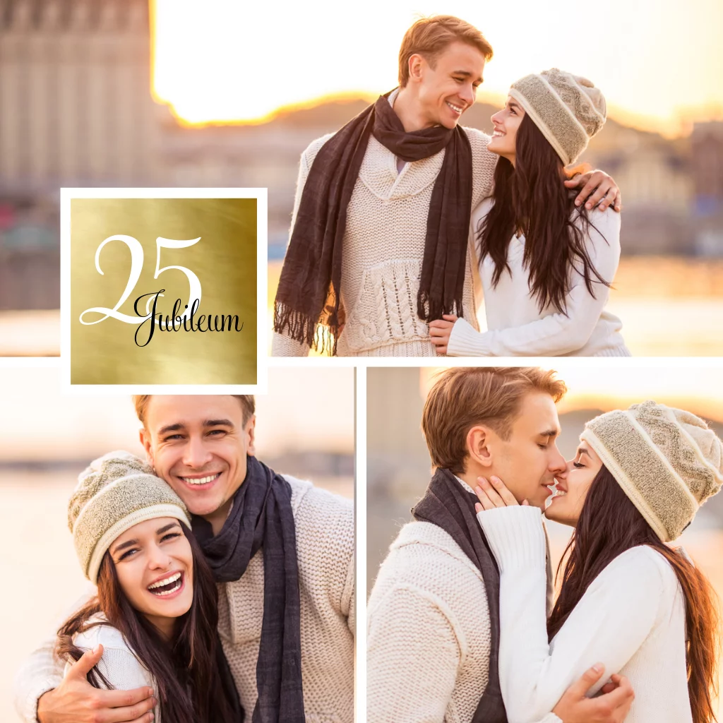 Uitnodiging jubileum 25 jaar trendy collage met gouden blokje