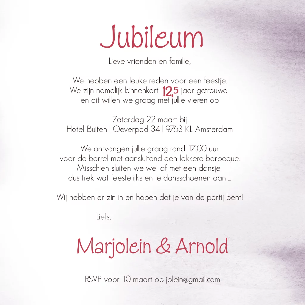 Uitnodiging jubileum bloemenhart 12,5 jaar