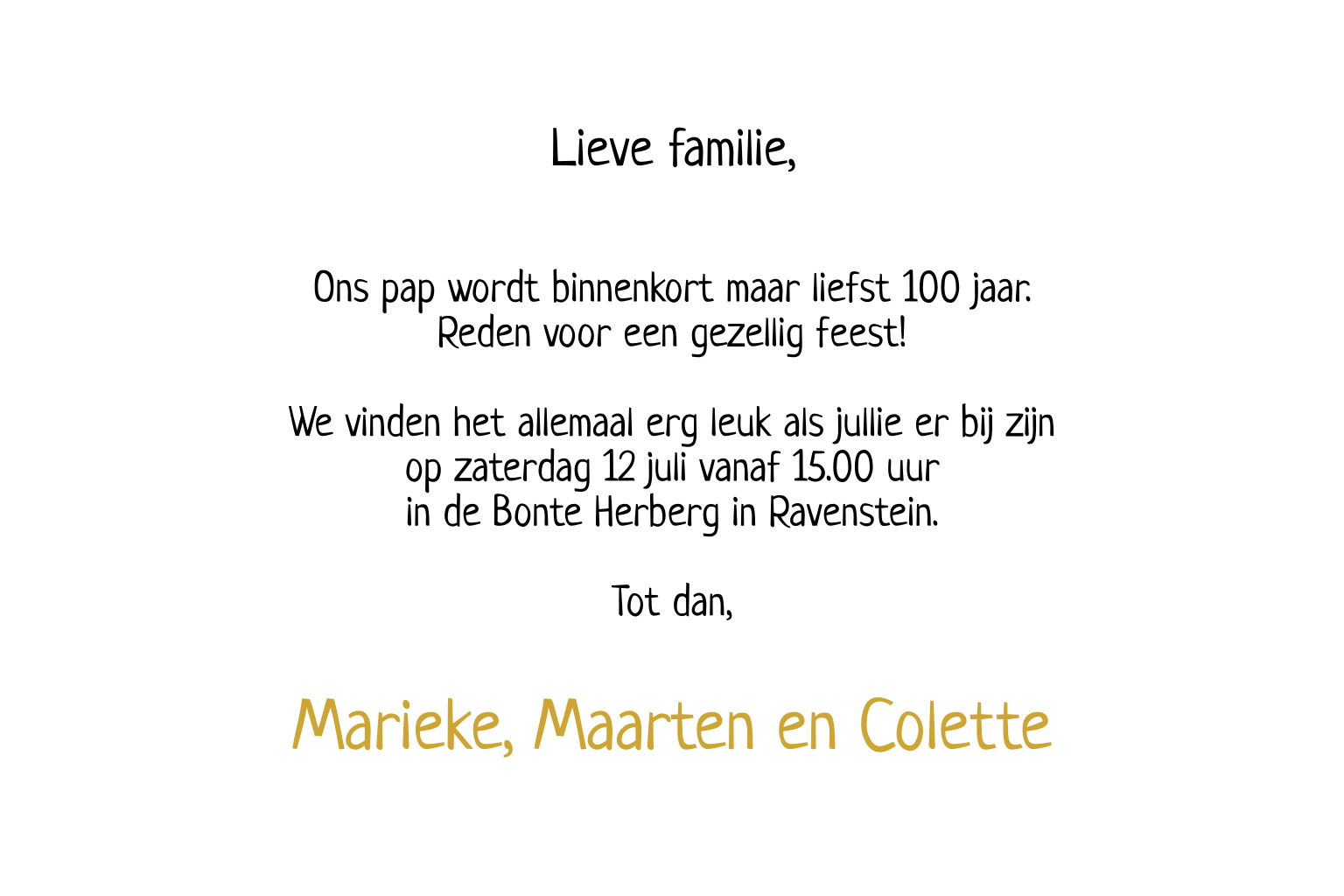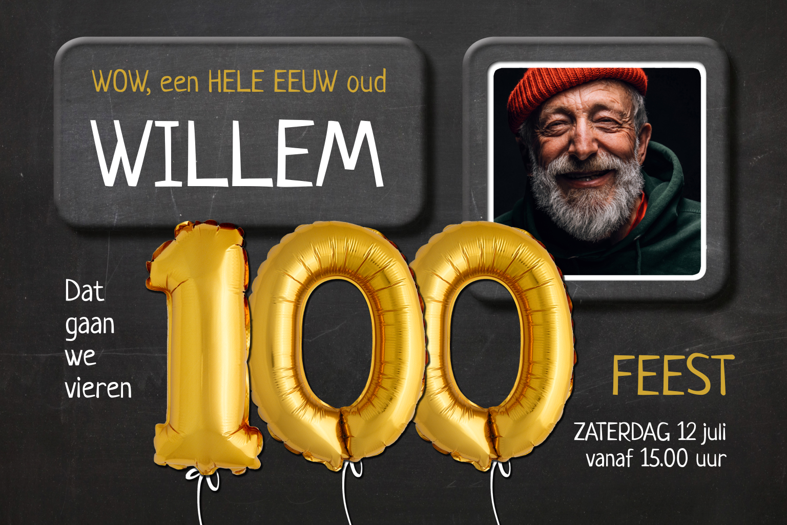 Een eeuw oud, hoe bijzonder is dat! Maak een mooie uitnodiging met eigen foto voor deze bijzondere mijlpaal. (22701)