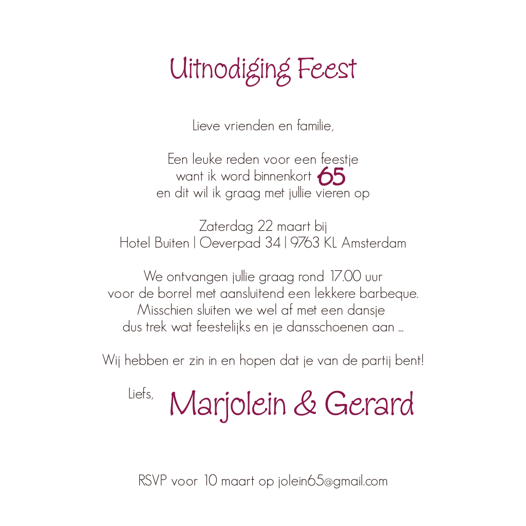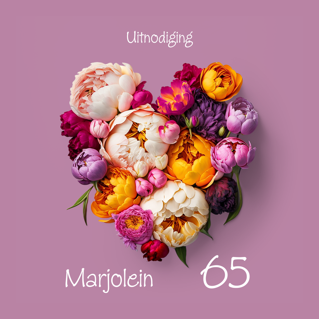 Uitnodiging verjaardag 65 jaar hart van bloemen