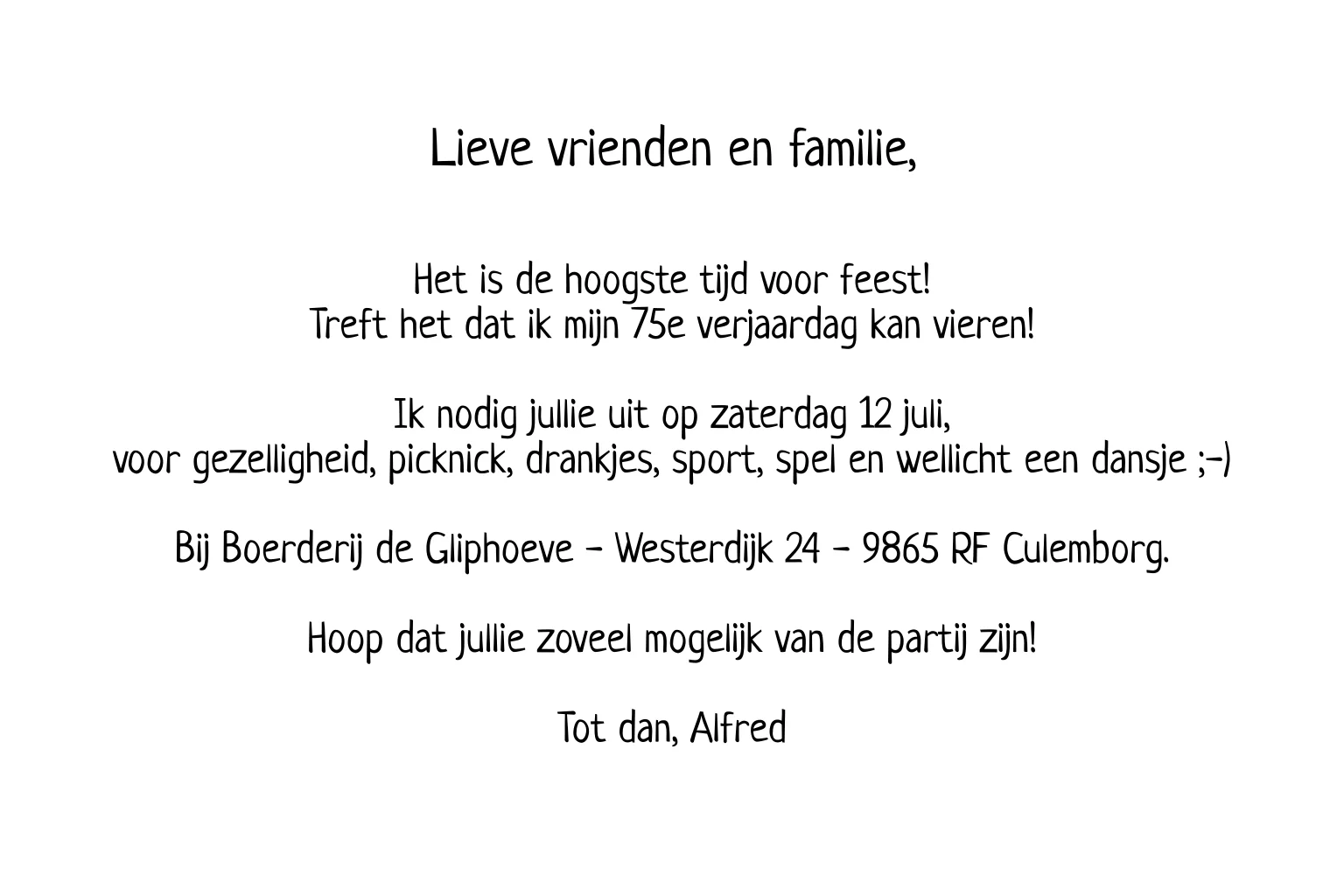 Uitnodiging verjaardag 75 ballonnen goud