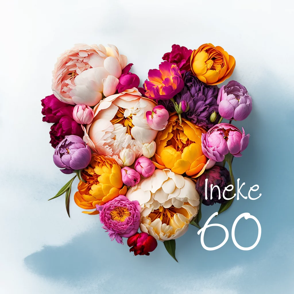Kleurrijke uitnodiging verjaardag met een groot bloemenhart. De achtergrondkleur kun je aanpassen. Makkelijk te maken en supermooi. Binnen nog ruimte voor je eigen foto. (24017)