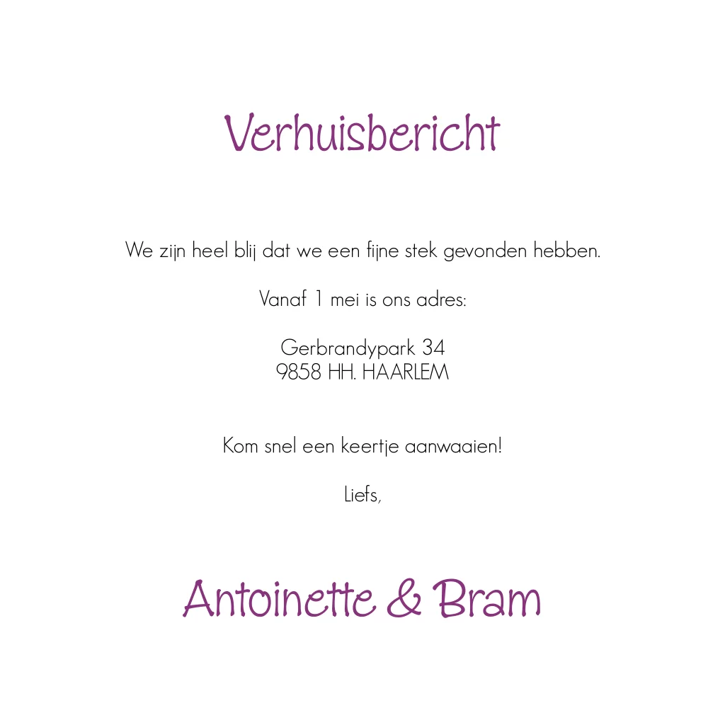 Uit geverfd in je nieuwe huis? Dan is dit een superleuke verhuiskaart. Misschien wel met de pastel kleuren die je in je interieur hebt toegepast. Mooie pasteltinten. (24031)