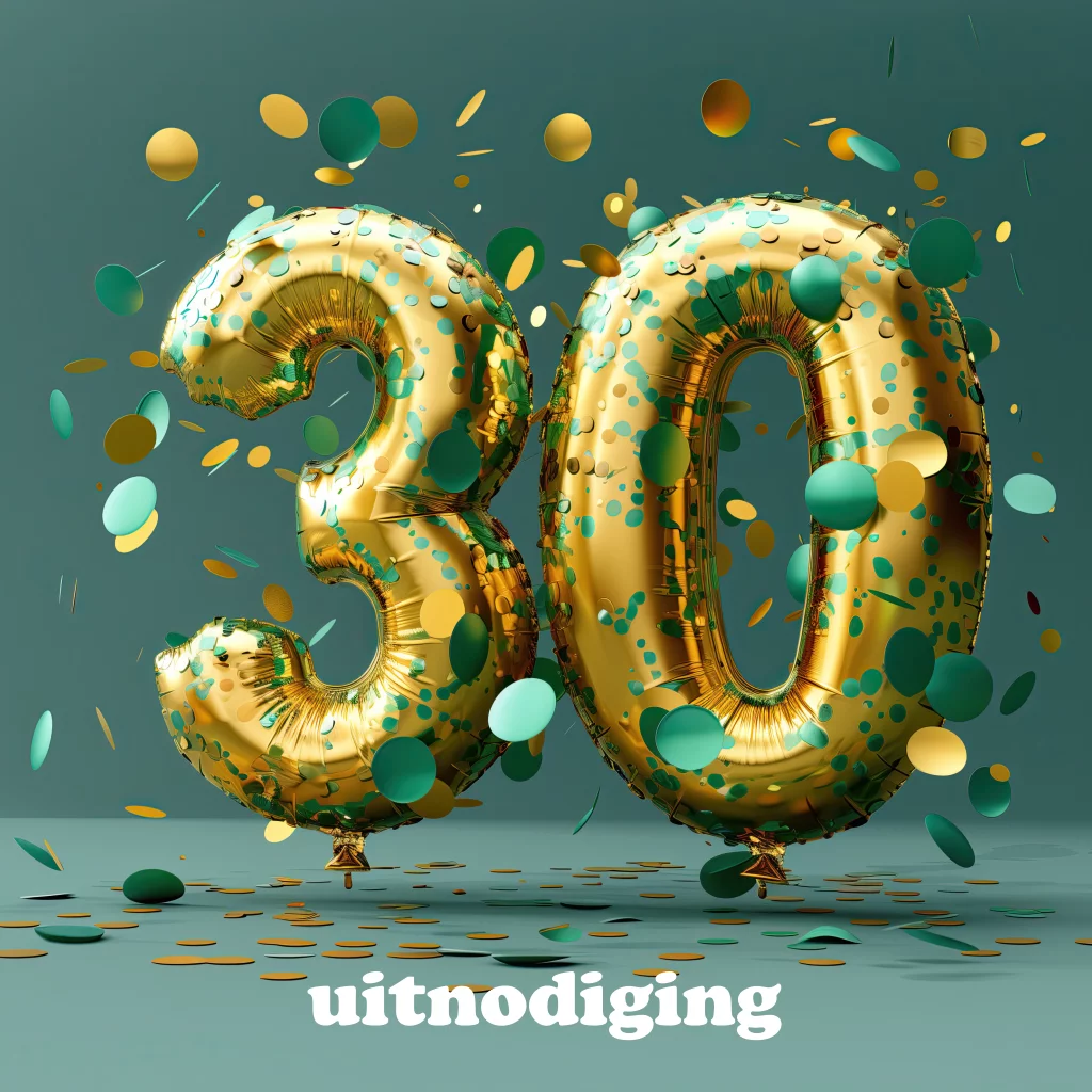 Uitnodiging verjaardag 30 jaar ballonnen goud en confetti