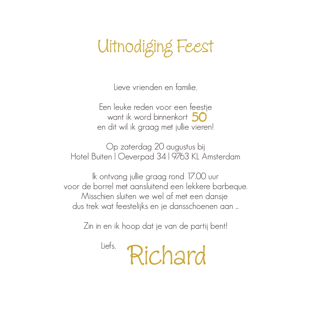 Feestelijke uitnodiging 50 jaar. Sarah of Abraham. Lekker hip met 3D metallic cijfer en goud paarse confetti. (23949)