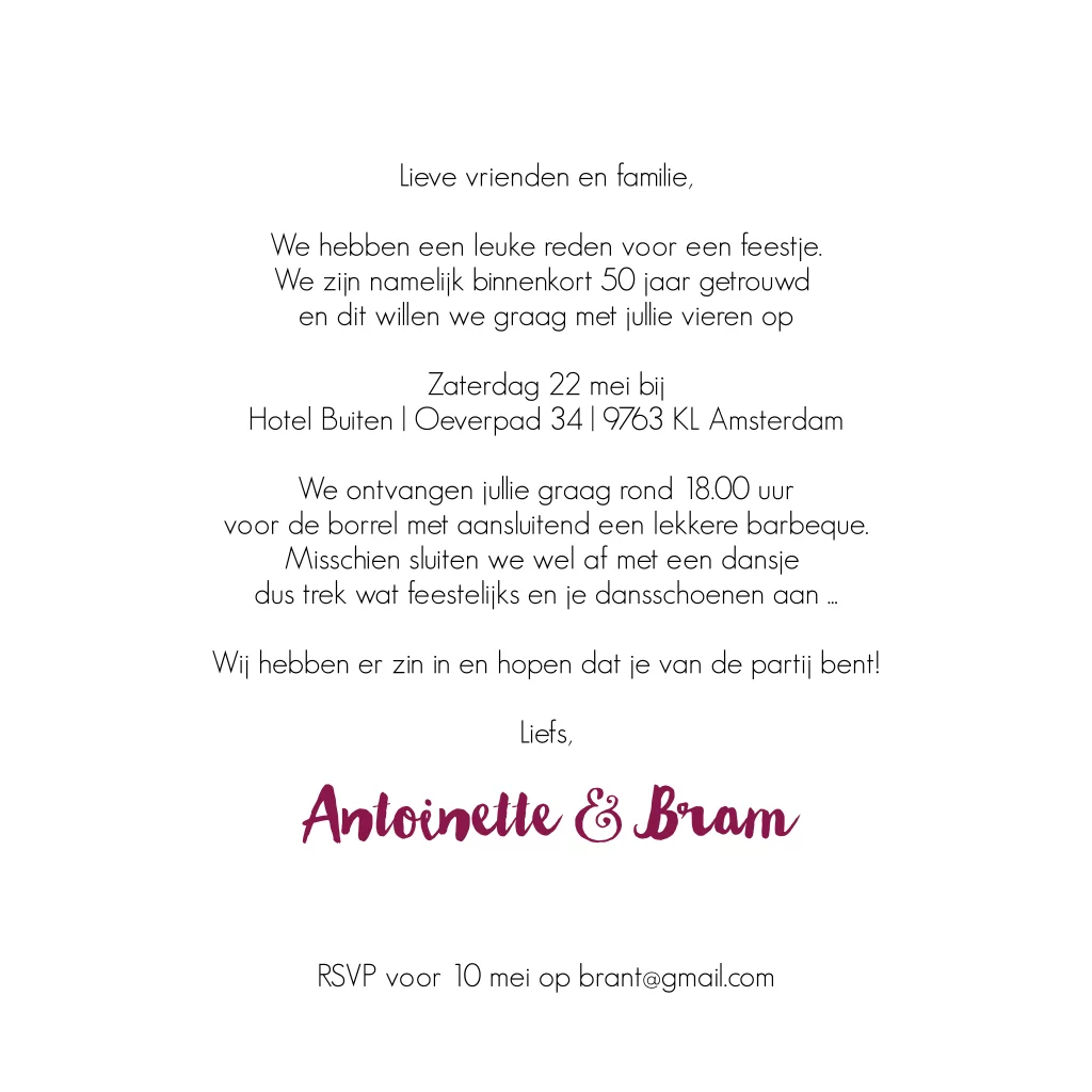 Zomers gekleurde uitnodiging jubileum feest 50 jaar getrouwd