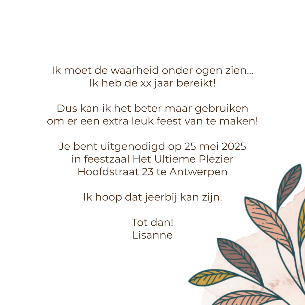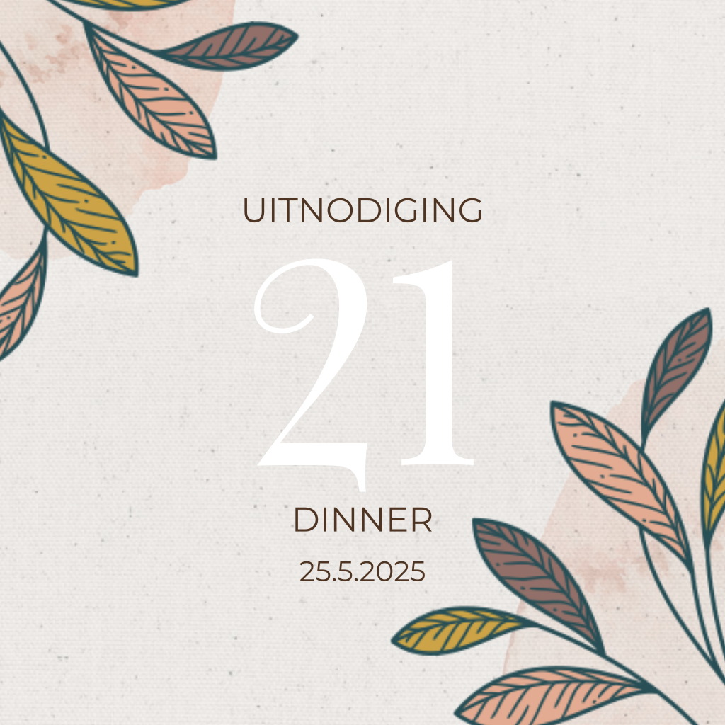21 diner uitnodiging met getekende bladeren en foliedruk