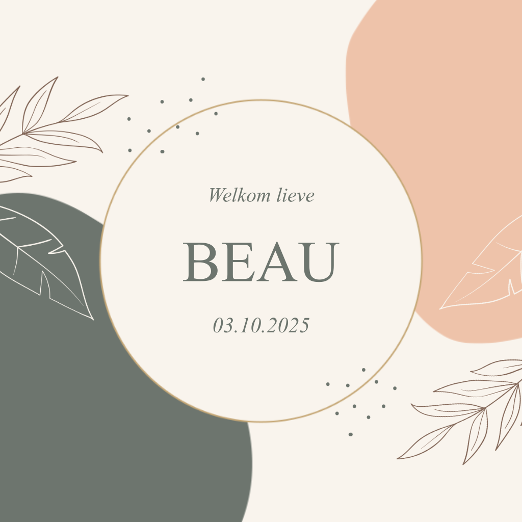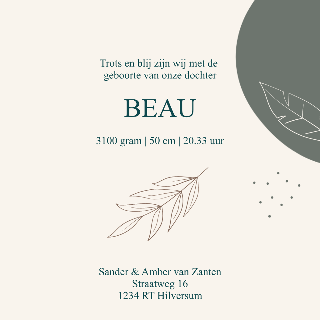 Trendy geboortekaartje meisje met abstracte vormen en botanische tekeningen in aardekleuren. (23740)