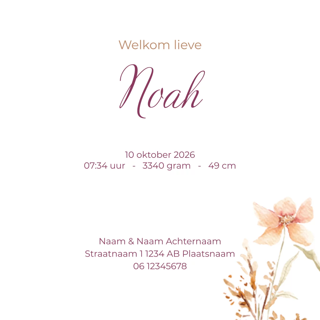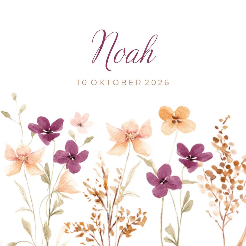 Geboortekaartje voor een meisje met hippe waterverf getekende veldbloemen. (24207)