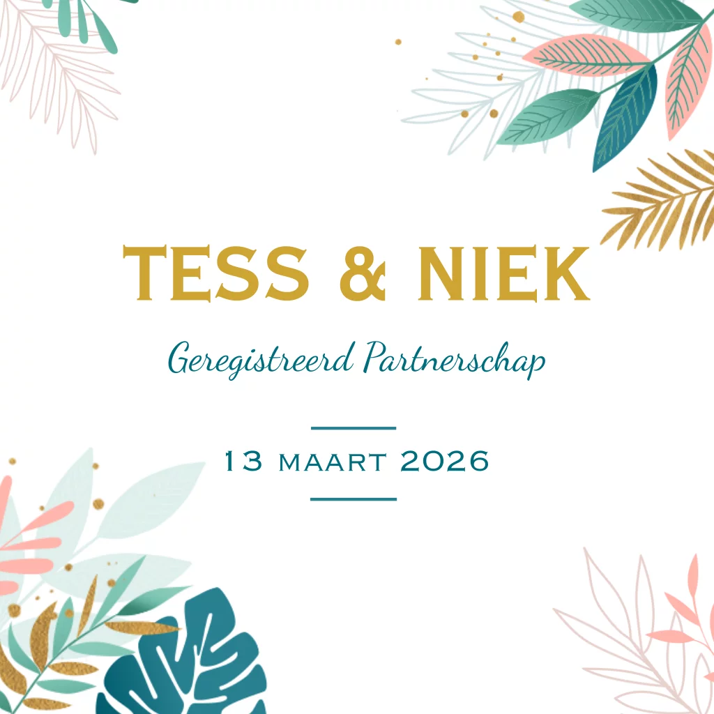 Trendy uitnodiging geregistreerd partnerschap met kleurrijke botanische elementen. (22902)