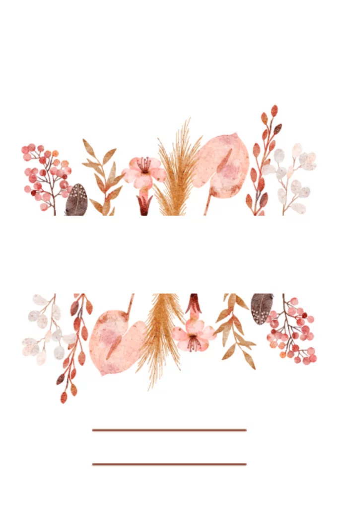 Stijlvolle jubileum met getekende droogbloemen en de namen en datum in rosegouden foliedruk. (23226)