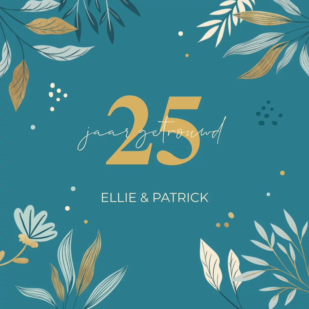 Jubileum uitnodiging 25 jaar getrouwd sierlijk botanisch