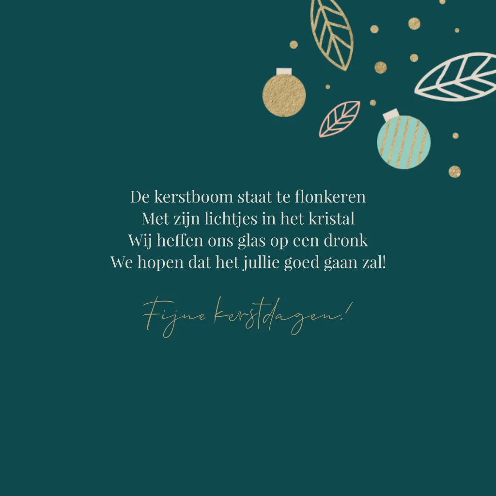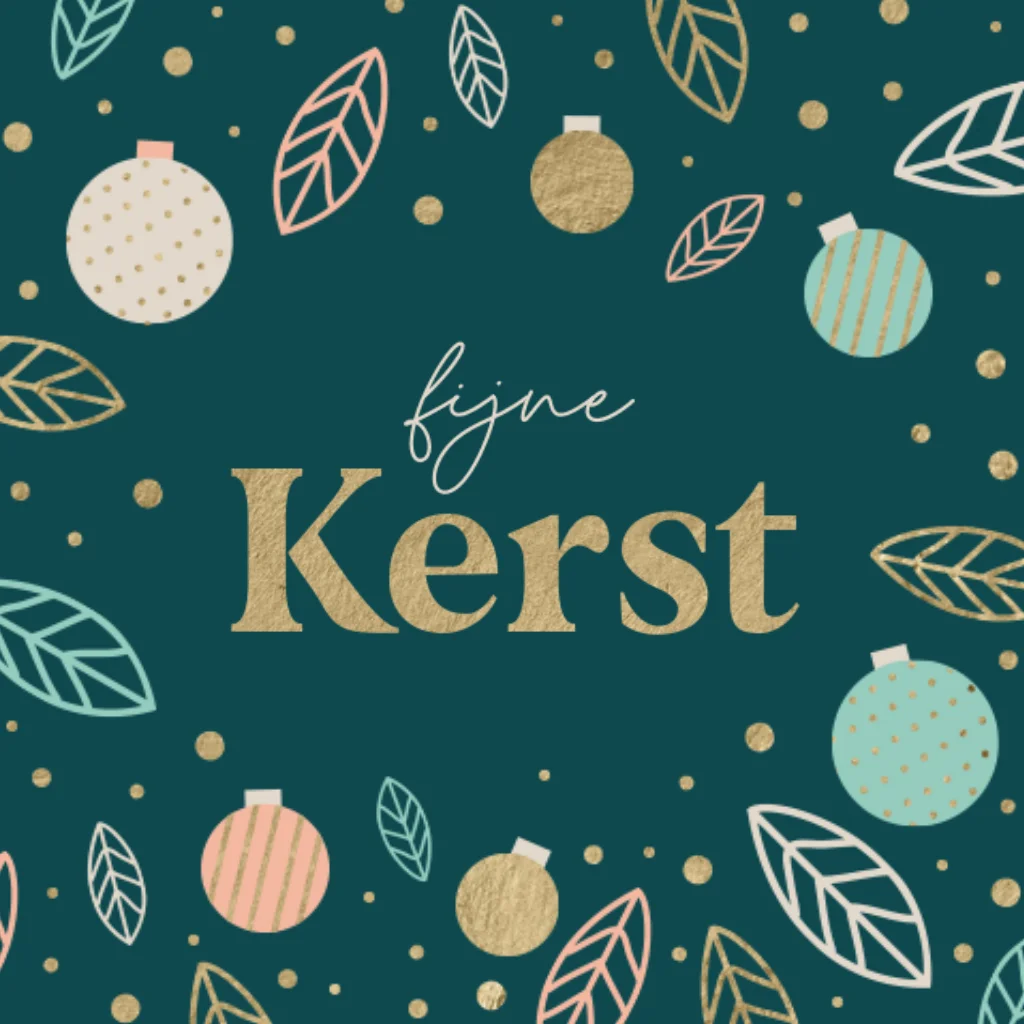 Trendy kerstkaart met getekende kerstballen en bladeren op een donkere achtergrond. (24181)
