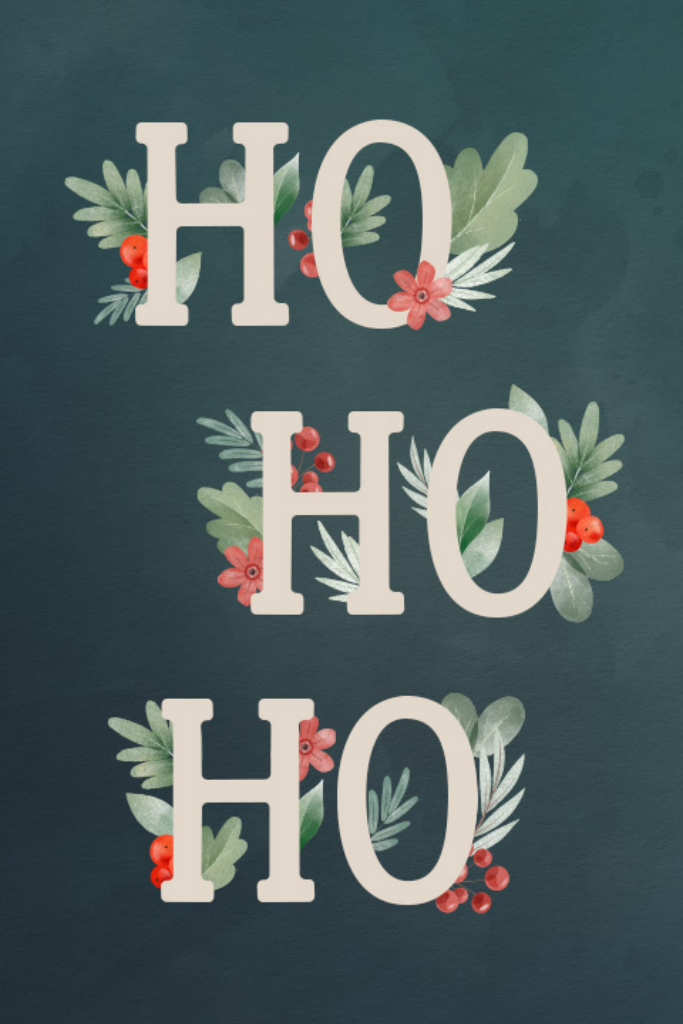 Trendy kerstkaart met de tekst "Hohoho" en getekende kerstelementen. (23635)