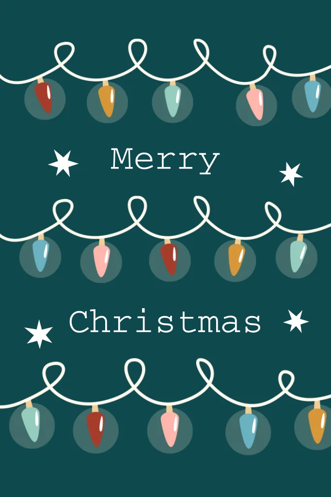 Moderne kerstkaart met getekende kerstlichtjes op een donkere achtergrond. (24180)