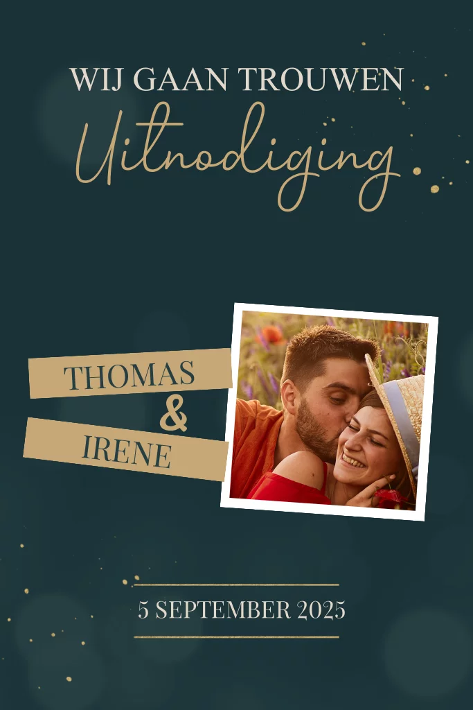 Hippe trouwkaart met spetters en plaats voor een eigen foto. (24089)