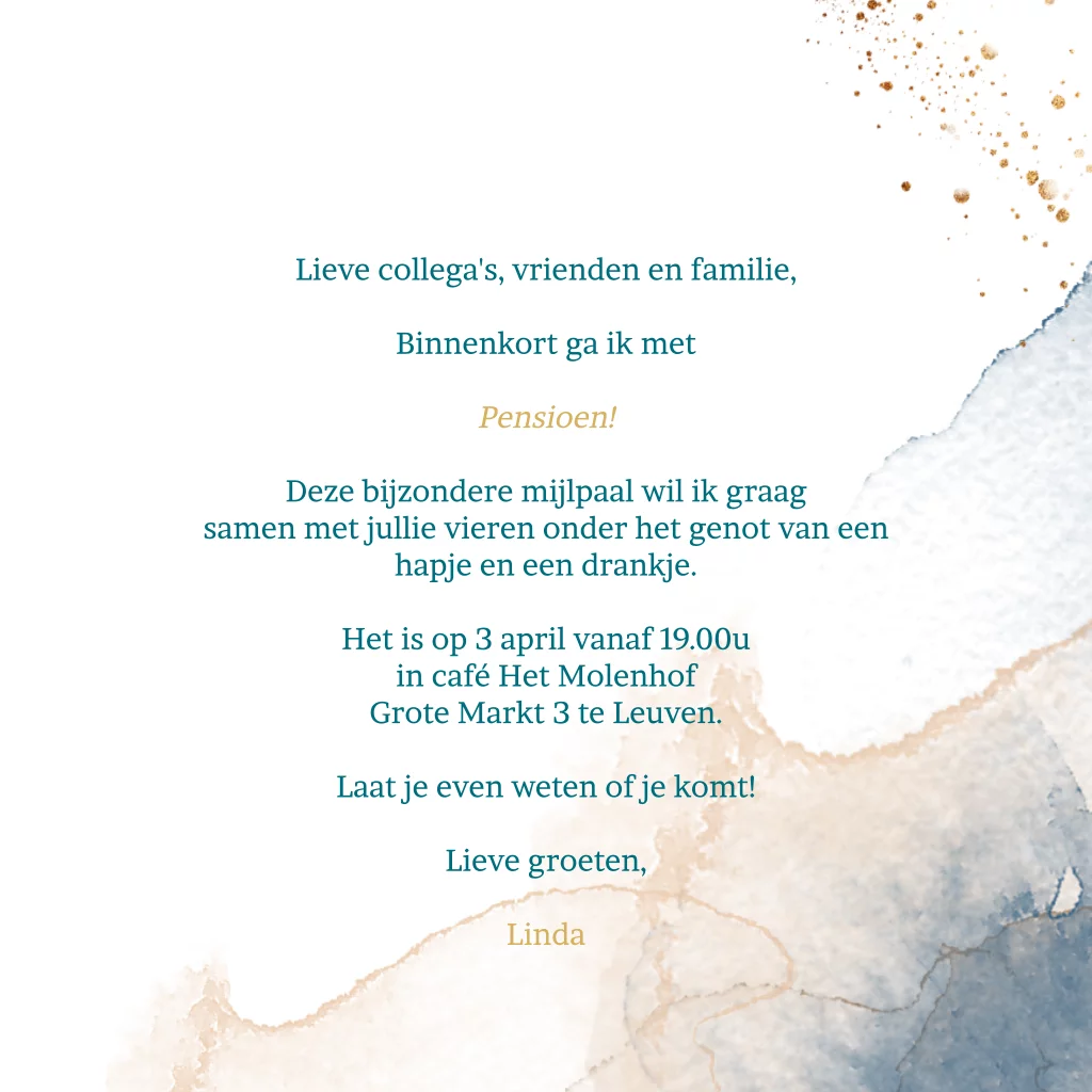 Pensioen feest uitnodiging modern met waterverf en spetters