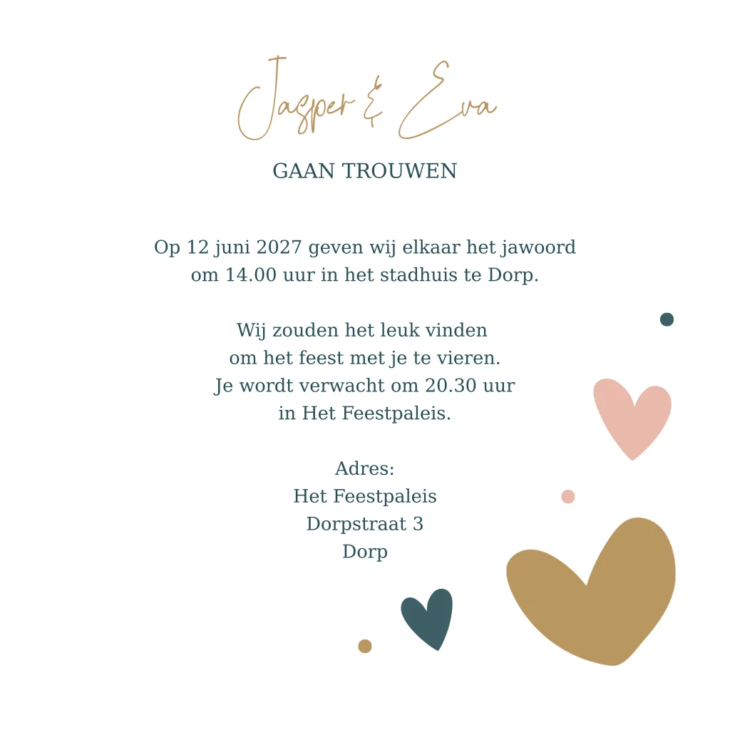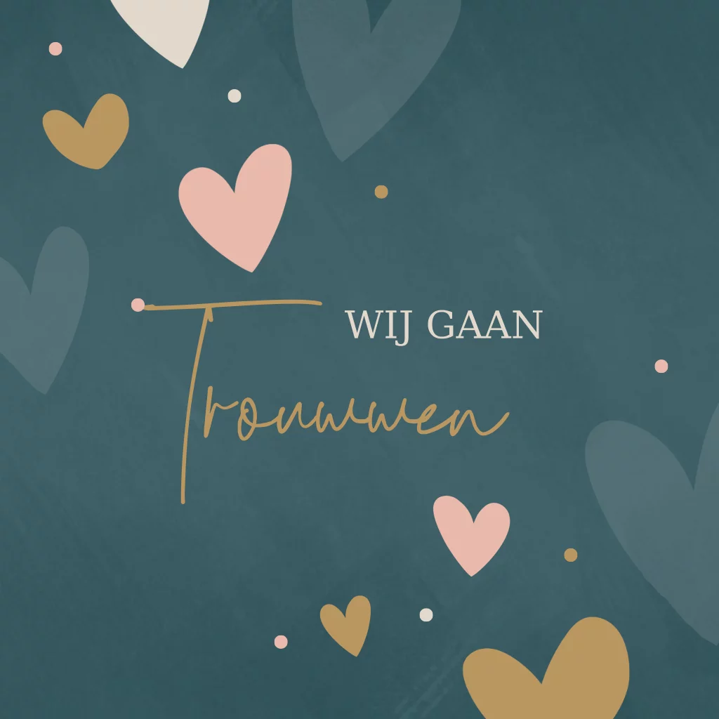Trouwkaart hip met kleurrijke hartjes op een donkere achtergrond. (24211)