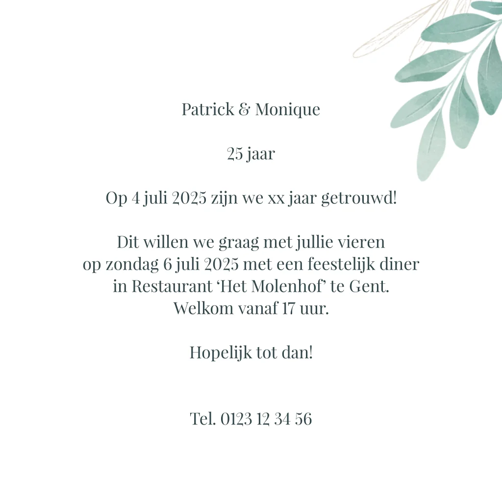 Uitnodiging 25 jaar getrouwd botanisch spetters