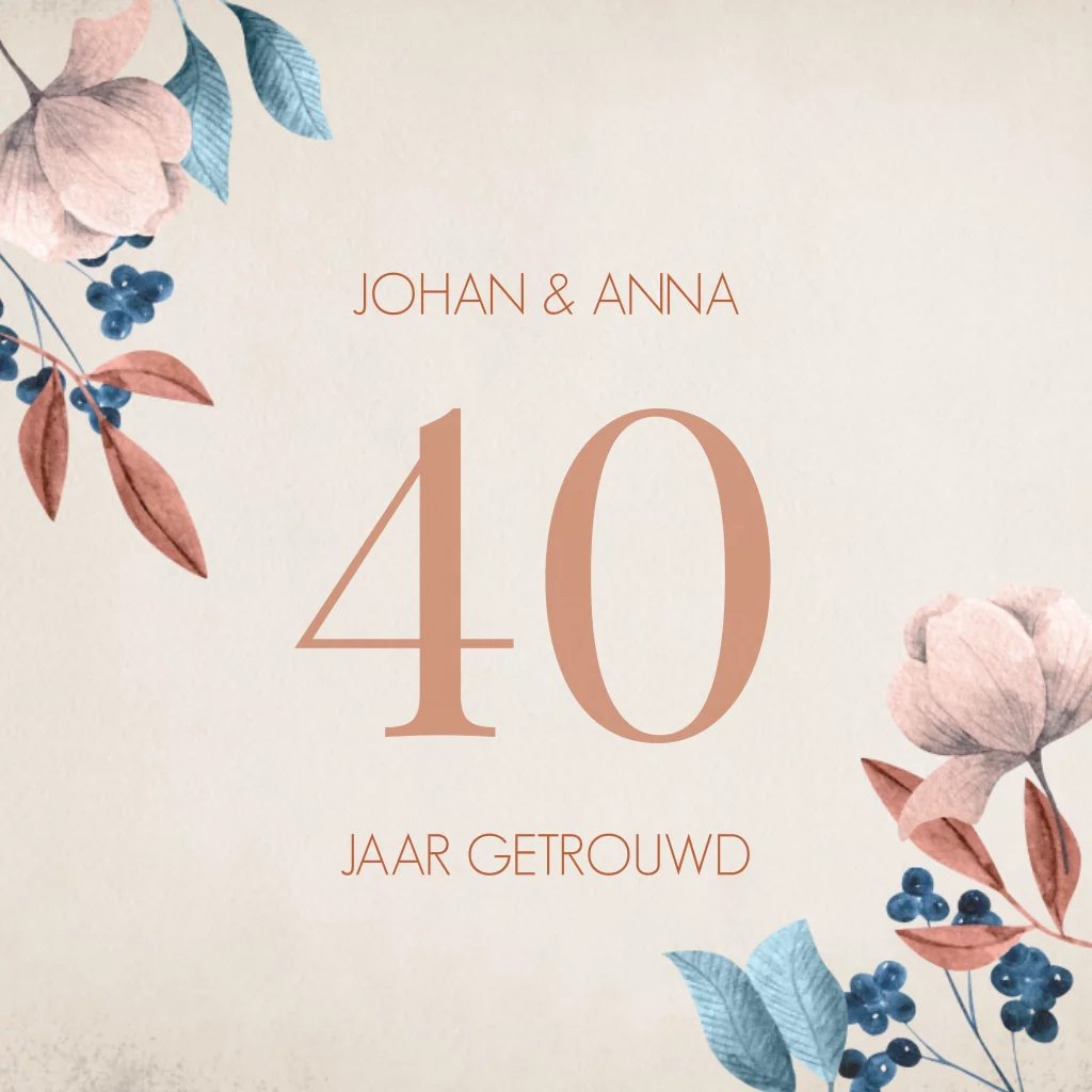 Uitnodiging 40 jaar getrouwd met getekende bloemen