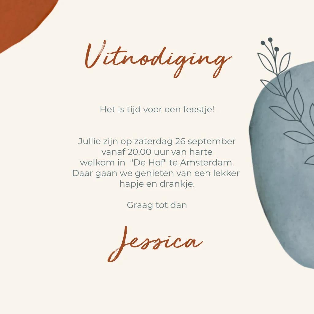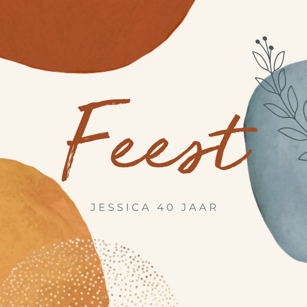 Trendy uitnodiging verjaardag 40e verjaardag met kleurrijke abstracte vormen en botanische elementen. De Leeftijd is eenvoudig naar wens aan te passen. (24575)